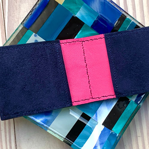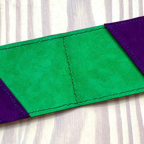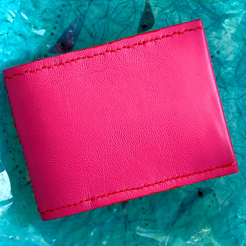 I make card wallets in a wide range of designs and leathers. These include hide, calf and goat leathers and suedes as well as more exotic skins. They vary from very bright colour combinations to the more traditional such as black, navy and tan. If you would like me to make something for you, please let me know your preferences of style and colour.